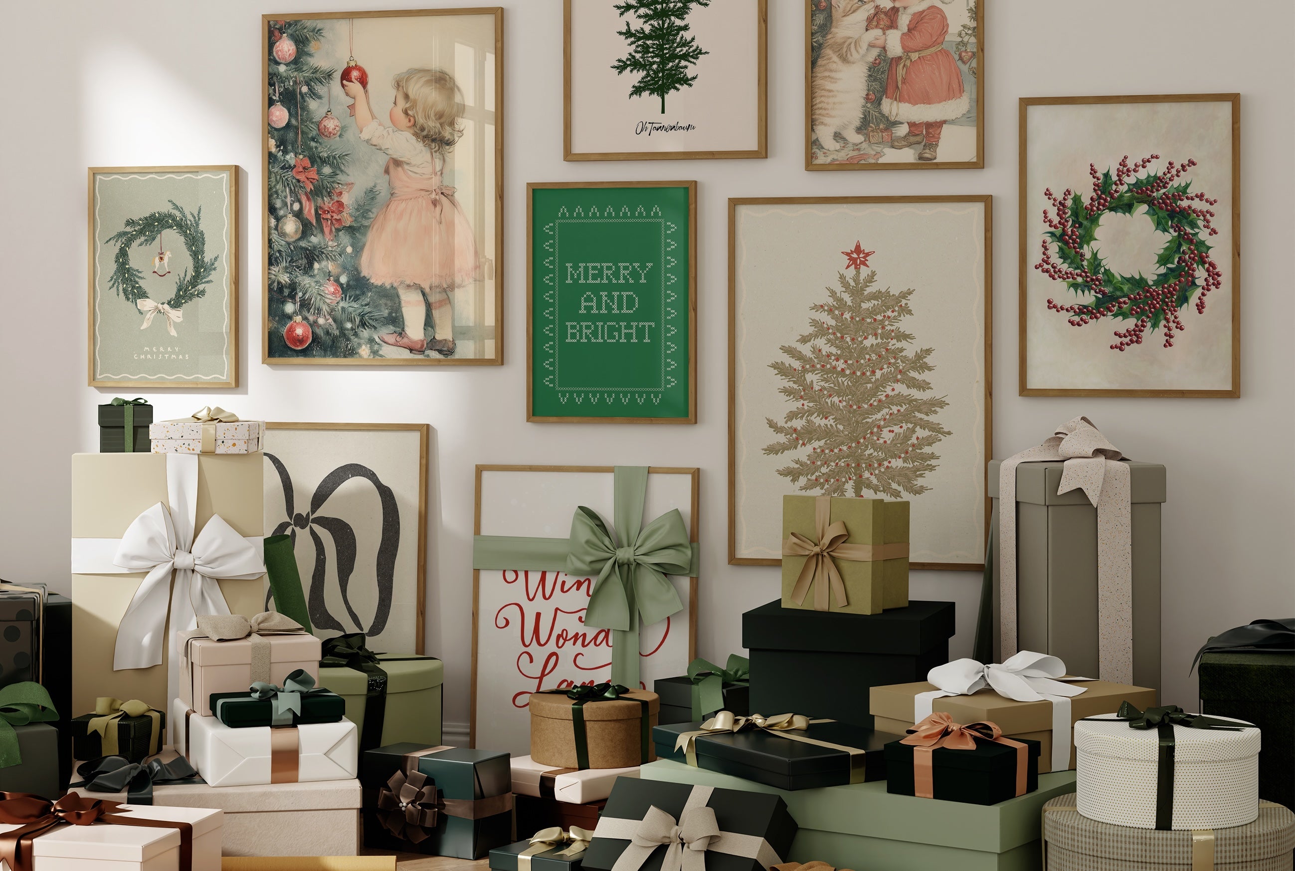 Eine Sammlung von Weihnachtsplakaten in verschiedenen Ausdrucksformen – von klassischer Nostalgie bis hin zu modernem Minimalismus. Sanfte Töne, warme Farbtöne und der Glanz der Jahreszeit.