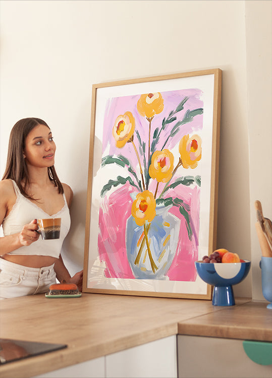 Dieses elegante botanische Stillleben vereint zarte Blüten und Blattstiele in einem ruhigen, poetischen Arrangement. Ausdrucksstarke, malerische Striche und subtile Skizzenlinien verleihen den Blumen Bewegung und Tiefe und sorgen für ein Gleichgewicht zwischen ruhigem Negativraum und intimen Details. Erstellt von der Künstlerin Ohkimiko. Ein raffinierter Blickfang für ruhige Innenräume.