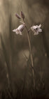 Dieses poetische, sepiafarbene Foto fängt eine einzelne zarte Blume ein, die lautlos aus dem Gras wächst. Die sanften Töne und der verschwommene Hintergrund betonen Einsamkeit, Zerbrechlichkeit und Stille und schaffen ein zeitloses botanisches Kunstwerk, das sanfte Eleganz und meditative Ruhe ausstrahlt.