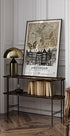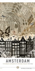 Träumen Sie von Amsterdam mit einem grafischen Poster, wo sich schmale Giebelhäuser in den Kanälen spiegeln, Fahrräder und Brücken für Rhythmus sorgen und dezente Kartendetails und Retro-Typografie die Reiselust wecken. Eine eindrucksvolle Collage der ikonischen Architektur der Stadt – illustriert von Simon Goggin. Farben in einem warmen Vintage-Ton und grafische Schichten verleihen dem Poster einen zeitlosen Look.