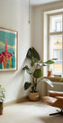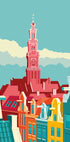 Remko Heemskerk hylder Amsterdam med en stilren illustration af Westerkerk i hjertet af Jordaan. Det ikoniske klokketårn rejser sig over kanaler og smalle gavlhuse, badet i klar himmel og grafiske farveflader. En moderne bysilhuet med klassisk sjæl – perfekt til elskere af arkitektur og storbyliv. Her.