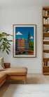Träumen Sie von einer Reise nach Amsterdam mit dieser farbenfrohen Illustration eines Fahrrads an einem ruhigen Kanal, umgeben von Bäumen und ikonischen Giebelhäusern. Sonnenstrahlen spiegeln sich im Wasser, während Retro-Reisestil auf modernen Minimalismus trifft. Ein eindrucksvolles Werk von Taudalpoi, perfekt für Stadtliebhaber. Eine Hommage an Fernweh, Nostalgie und nordische Farbpoesie.