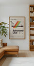 Ein Retro-inspiriertes Poster der NASA-Raumfähre Discovery mit einem markanten Regenbogenstreifendesign, das das Raumschiff durchschneidet. Die Kombination aus Minimalismus, Vintage-Typografie und japanischem Text macht dieses Kunstwerk zu einer Mischung aus Astronomie, Design und Nostalgie. Eine eindrucksvolle Hommage an die Weltraumforschung und die amerikanische Innovation.
