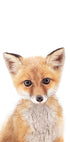 Ein bezauberndes High-Key-Porträt eines Fuchsjungen, aufgenommen vor einem einfachen weißen Hintergrund. Das weiche Fell, die großen Augen und die feinen Details unterstreichen die Unschuld und Schönheit dieses jungen Waldtieres. Perfekt für das Kinderzimmer, Tierliebhaber oder moderne minimalistische Innenräume.