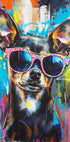 Ein lebendiges Street-Art-Pop-Art-Porträt eines Chihuahua mit bunter Sonnenbrille, bemalt mit kräftigen, von Graffiti inspirierten Strichen. Dieses verspielte und moderne Kunstwerk vereint Humor, Stil und urbane Energie, um jedem Raum eine lustige und ausgefallene Atmosphäre zu verleihen.