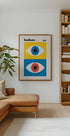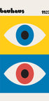Ein unverwechselbares, vom Bauhaus inspiriertes Poster mit zwei stilisierten Augen in kräftigen Farbblöcken aus Gelb, Blau, Rot und Schwarz. Dieses abstrakte Design fängt die Essenz des Bauhauses von 1923 mit einer Kombination aus minimalistischen Formen und markanten Kontrasten ein. Perfekt für alle, die Vintage-, ikonisches und modernistisches Design lieben.