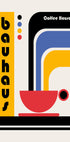 Ein vom Bauhaus inspiriertes Kaffeehaus-Poster mit kräftigen geometrischen Formen in Rot, Gelb, Blau und Schwarz. Das abstrakte Design zeigt eine dampfende Kaffeetasse im reinen Bauhaus-Stil, die Funktionalität mit künstlerischer Schlichtheit verbindet. Perfekte Wandkunst für Retro-Küchen, Cafés und Liebhaber des Vintage-Modernismus.