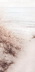 Ein friedliches Küstenfoto, das Sanddünen mit feinem Gras einfängt, die zur ruhigen Küste hinabführen. Die sanften Beigetöne und der helle Ausdruck schaffen eine ruhige und natürliche Atmosphäre, ideal für eine von der Küste inspirierte Dekoration.