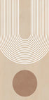 Ein stilvolles, minimalistisches Poster mit klaren weißen Bögen kombiniert mit einem einfarbigen braunen Kreis auf sanften Beigetönen. Die geometrische Komposition spiegelt das moderne Design der Mitte des Jahrhunderts wider und verleiht jedem Interieur Wärme, Schlichtheit und Eleganz.