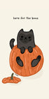 Schwarze Katze sitzt spielerisch in einem Kürbis