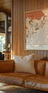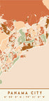 Emiliano Deificus maps the city in rich earth tones and inky blacks: a sleek cartographic portrait of Panama City where coastlines, avenues, and latitude/longitude lines weave a quietly dramatic tapestry. Minimal yet intricate, this urban study brings Pacific contours and metropolitan energy to your walls.