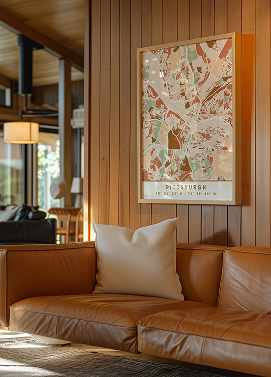Black Maps Earth Tones 67 von Emiliano Deificus vereint rohe urbane Energie mit gedämpften Erdtönen. Eine stilisierte Karte mit dunklen Kontrasten und subtilen Texturen zeichnet die Straßen und Strukturen der Stadt als grafische Muster. Ein modernes, stimmungsvolles Poster, das der Einrichtung Ruhe, Rhythmus und Charakter verleiht. Perfekt für moderne Häuser und kreative Räume.