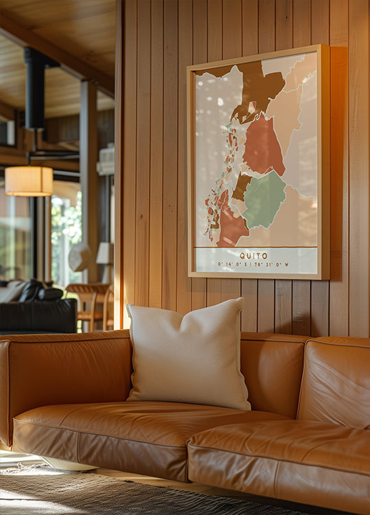 Black Maps Earth Tones 70 von Emiliano Deificus verwandelt die lebendige Struktur der Stadt in eine elegante grafische Karte in tiefen Erdtönen vor einem schwarzen Hintergrund. Feine Linien und geometrische Muster zeichnen Straßen und Viertel mit Ruhe und Präzision und verleihen dem Raum einen modernen, urban-minimalistischen Ausdruck und eine zeitlose Atmosphäre.
