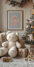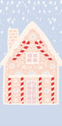 Ein märchenhaftes blaues Lebkuchenhaus steht inmitten einer Winterlandschaft, dekoriert mit Zuckerrohr, Schneeflocken und gefrorenen Details. Warme Lichter in den Fenstern laden zur Gemütlichkeit ein, während der klare, ruhige Hintergrund die grafische Einfachheit des Motivs betont. Ein bezauberndes Weihnachtsplakat von Talitha McQueen. Perfekt für ein Kinderzimmer, einen Eingangsbereich oder ein Wohnzimmer, bereit für eine gemütliche Weihnachtsatmosphäre.