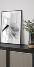 Ein auffälliges Schwarz-Weiß-Foto, das die feinen Texturen und Details einer blühenden Blume einfängt. Die minimalistische Komposition unterstreicht die natürliche Eleganz der Blumen und ist eine raffinierte Wahl für moderne, ländliche oder vom Bauernhof inspirierte Innenräume.