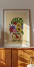 Blumen in einem Vintage-Kaffeedosen-Poster