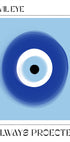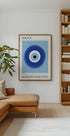 Eine kühne und moderne Illustration des traditionellen Symbols des bösen Blicks, das Schutz und Abwehr negativer Energie darstellt. Das markante kreisförmige Design in Blau und Weiß schafft einen starken minimalistischen Ausdruck mit kultureller Bedeutung.
