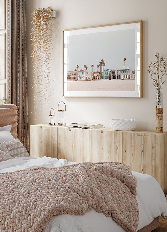 Bunte Strandfront mit Palmen von Melloi Art Prints – Hochwertiges Papier mit einer glatten, matten Oberfläche und eleganter Haptik. Die matte Oberfläche reduziert Blendungen und sorgt für ein raffiniertes, zeitloses Aussehen. Robust und langlebig für den dauerhaften Einsatz, ideal sowohl für den professionellen Einsatz als auch für dekorative Präsentationen.