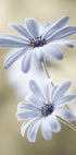 Ein frisches und leuchtendes botanisches Kunstwerk mit Kap-Gänseblümchen in voller Blüte. Mit zarten weißen Blütenblättern mit sanftem Violettstich und schlanken grünen Stielen fängt diese leuchtende Blumenkomposition die Essenz von Sommergärten ein. Perfekt, um jedem Raum eine natürliche und elegante Note zu verleihen.
