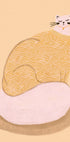 Eine skurrile Illustration einer weißen Katze, die einen gemusterten buttergelben Pullover mit wellenartigen Mustern trägt. Der moderne und gemütliche Stil, kombiniert mit einer sanften Pastellpalette, macht es perfekt für vielseitige Innenräume, Kinderzimmer oder als lustiges Kunstwerk für Katzenliebhaber.