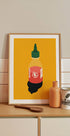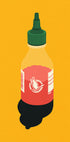 Eine auffällige und moderne Illustration einer Chilisaucenflasche auf einem leuchtend gelben Hintergrund. Minimalistisch und dennoch auffällig – dieses grafische Kunstwerk bringt eine verspielte Pop-Art-Energie in Küchen, Esszimmer oder moderne Innenräume und ist ein lustiges Statement für Food- und Design-Enthusiasten.