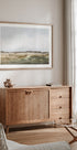 Eine friedliche abstrakte Landschaft von Dan Hobday mit Erdtönen und weichen Pinselstrichen. Mit Grün-, Beige- und Grautönen, die zu einem ruhigen Horizont verschmelzen, vermittelt das Werk ein Gefühl von Ruhe und Zeitlosigkeit. Perfekt für Innenräume im Landhausstil, moderne, minimalistische Häuser oder als Teil einer von der Natur inspirierten Bilderwand.