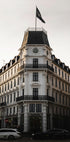 Ein wunderschönes Foto eines historischen Gebäudes in Kopenhagen, getaucht in das warme Abendlicht. Der Glockenturm, die Flagge und die eleganten Fassaden unterstreichen die zeitlose Architektur der Stadt und machen diesen Druck zu einem anspruchsvollen Wandkunstwerk, das Kultur, Erbe und den nordischen Stadtgeist feiert.