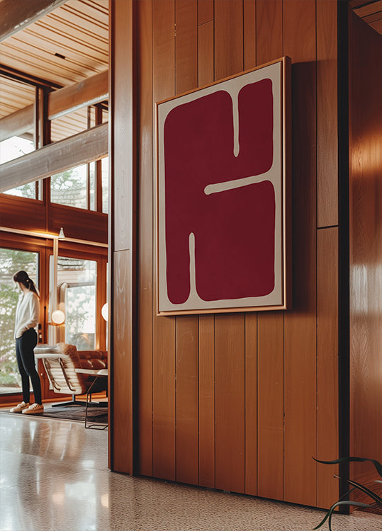 Crimson Contours von Vitor Costa fegt Burgunderrottöne über ein warmes Beigefeld, in dem fließende Kurven auf klare geometrische Kanten treffen. Ein Hauch von Aquarelltextur und Minimalismus aus der Mitte des Jahrhunderts schaffen einen kühnen, zeitgenössischen Rhythmus – organische Formen, vielschichtige Kontraste und moderne Haltung für raffinierte, ausdrucksstarke Räume. Ein markanter Blickfang.