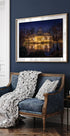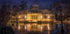 Eine eindrucksvolle Nachtaufnahme des Palacio de Cristal in Madrid, dessen elegante Glaskuppel sich im ruhigen Teich spiegelt. Umgeben von den Silhouetten der Bäume und warmem Licht erzeugt das Motiv eine ruhige, poetische Atmosphäre. Die Symmetrie und Spiegelungen lenken den Blick auf die Details des Palastes. Foto von Bartolome Lopez. Madrid, Spanien.
