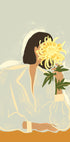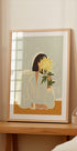 Das Poster „Golden Flower Tranquility“ fängt einen Moment stiller Eleganz und Kontemplation ein. Eine gesichtslose Figur, die eine fließende, weiche Bluse trägt, hält eine leuchtend gelbe Chrysantheme vor ihr Gesicht und schafft so ein poetisches Wechselspiel zwischen Identität und Natur. Die warmen Senftöne der Tischplatte und die tiefgrünen Blätter gleichen den gedämpften Pastellhintergrund aus und machen die goldenen Blütenblätter der Blumen zum Mittelpunkt. Dieses minimalistische und dennoch ausdrucksstarke Werk kombiniert moderne Linienführung mit strukturierten, malerischen Pinselstrichen und eignet sich perfekt, um jedem modernen Interieur künstlerische Ruhe zu verleihen.