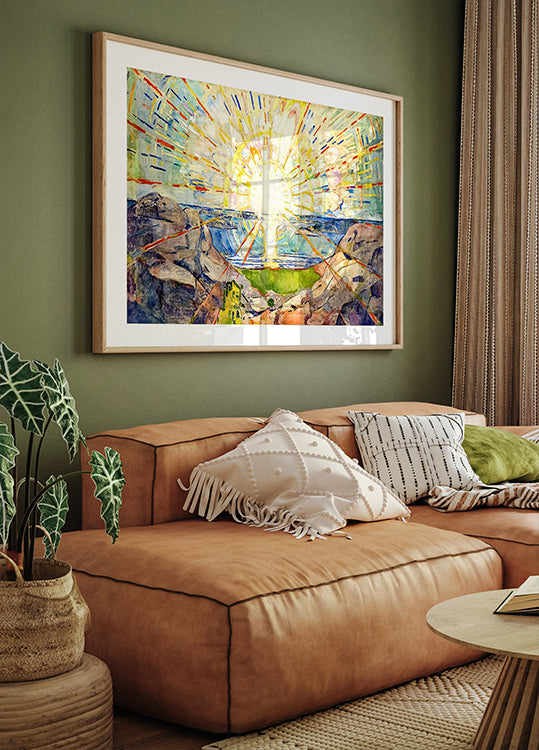 Ein brillantes Meisterwerk von Edvard Munch, „Die Sonne“ (1909), zeigt einen atemberaubenden Sonnenaufgang über einer felsigen norwegischen Landschaft. Kräftige Lichtstrahlen gehen von der zentralen Sonne aus und erfüllen den Himmel mit leuchtenden Farben und dynamischer Energie. Munchs ausdrucksstarker Stil fängt sowohl die Erhabenheit der Natur als auch die tiefe Symbolik ein, die mit Erneuerung und Leben einhergeht. Ein ikonisches Werk moderner Kunst, perfekt für Munch-Liebhaber und Landschaftsliebhaber