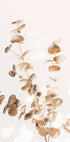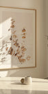 Ein modernes botanisches Kunstwerk mit Eukalyptuszweigen in funkelnden Goldtönen auf einem hellen, auffälligen Hintergrund. Der Doppelbelichtungseffekt verleiht Tiefe und Eleganz und macht es zu einem perfekten Statement-Stück für minimalistische, skandinavische und moderne Innenräume.