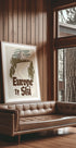 Gleiten Sie mit dieser Reisepostkarte im Vintage-Stil in einen Skiurlaub des goldenen Zeitalters. Schneebedeckte Gipfel erheben sich über dunklen Kiefern, eine rote Seilbahn fährt über die Piste und auffällige Retro-Typografie lockt zu Europas ikonischen Ferienorten – denken Sie an den Charme und das alpine Abenteuer von Chamonix – eingefangen in warmen Grün-, Braun- und knackigen Winterweißtönen. Eine nostalgische Anspielung auf Skiliebhaber.