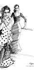 Flamencoens puls fanges i en livlig skitse af to dansere i prikkede kjoler, fanget midt i et dramatisk sving. De ekspressive, skitseagtige linjer og spanske referencer til Sevilla og Madrid giver motivet energi og charme. En hyldest til venskab, rytme og stil – af Awol Art Alex. Prikker, volantes og attitude gør værket til blikfang i ethvert rum.