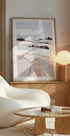 Frosty View II von Nikita Jariwala zeigt eine ruhige, abstrakte Winterlandschaft: Ein zugefrorener See spiegelt staubige Bergsilhouetten unter einem kühlen, elfenbeinweißen Himmel. Gedeckte Brauntöne und Frostnebel erzeugen Tiefe und Stille, die zum Nachdenken einladen und dem Raum eine mondäne, nordische Ruhe verleihen. Perfekt als ruhiger Mittelpunkt.