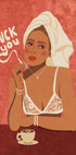 Das Brave Attitude Coffee Poster ist ein unverwechselbarer und kraftvoller Kunstdruck, der Vintage-Glamour mit uneingeschränktem Selbstvertrauen verbindet. Es zeigt eine selbstbewusste Frau in einem weißen Spitzen-BH, mit Perlen und einem Handtuch-Turban, die ihren Kaffee und ihre Zigarette genießt, während die kühne Botschaft „F*** You“ aus dem Rauch aufsteigt. Mit warmen Rottönen setzt dieses provokante und dennoch stilvolle Kunstwerk ein furchtloses Statement – ​​perfekt, um modernen Innenräumen, Cafés oder Kunstwänden mit Persönlichkeit Persönlichkeit und Eleganz zu verleihen.