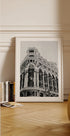 Ein raffiniertes Schwarz-Weiß-Foto des Prada-Stores in der Galleria Vittorio Emanuele II in Mailand, eingerahmt von kunstvoller Architektur und dem ikonischen Mosaikboden. Dieser Druck vereint Mode und Geschichte und drückt italienische Eleganz und zeitlosen Stil aus – perfekt für Innenräume, die von Kultur, Luxus und Design inspiriert sind.