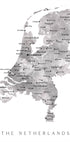 Denne stilrene plakat af Rosana Laiz Blursbyai viser Nederlandene i elegante grå nuancer. Et minimalistisk kort med fine konturer og diskrete bynavne som Amsterdam, Rotterdam og Utrecht på lys baggrund. Et roligt, skandinavisk udtryk, der skaber overblik og tidløs atmosfære i rummet. Perfekt til entré, stue eller kontor.