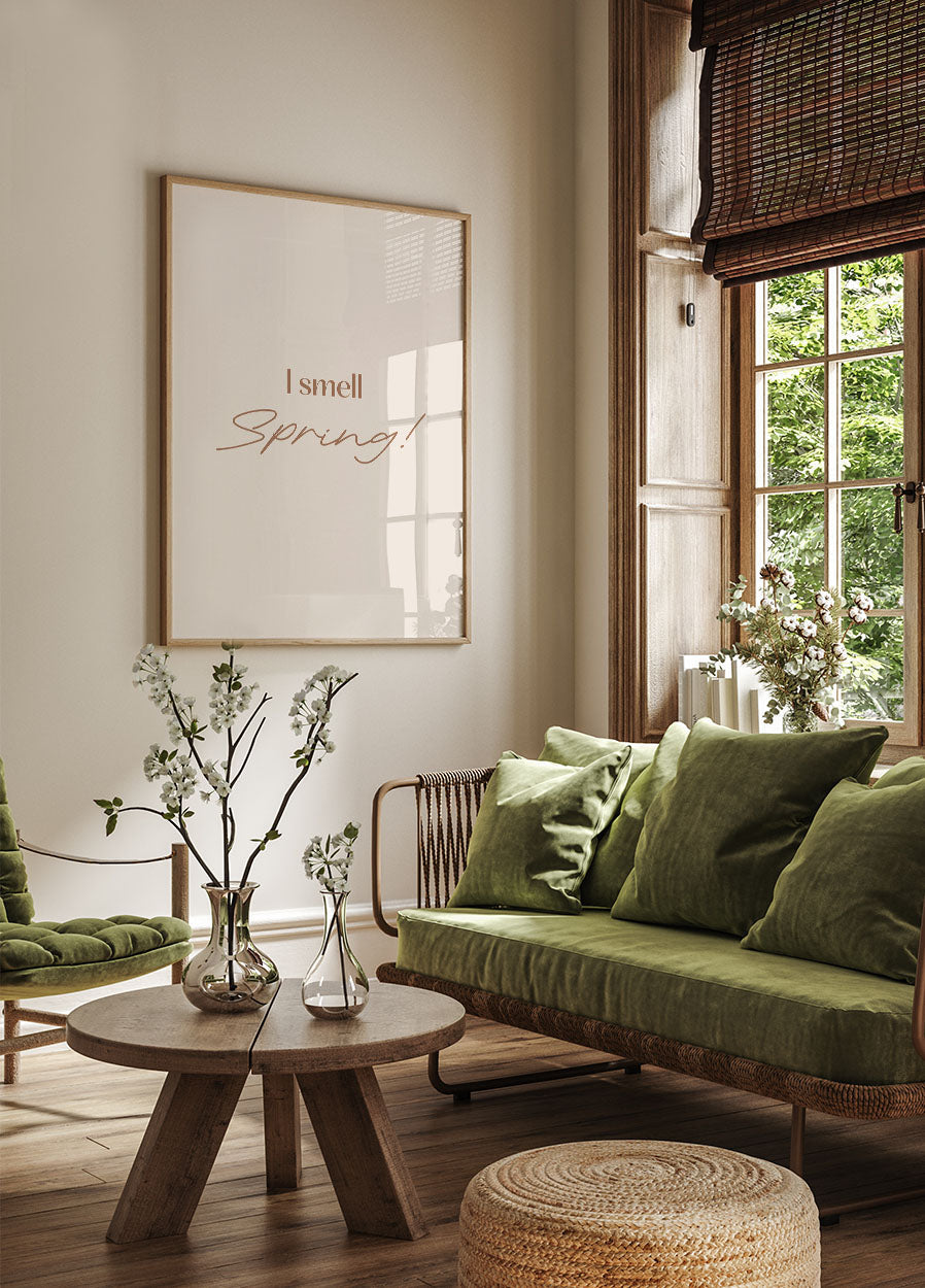 Ein erfrischendes und inspirierendes Poster mit dem Text „I Smell Spring“. Perfekt, um das Gefühl des Frühlings in jeden Raum zu bringen und eine helle und optimistische Atmosphäre zu schaffen, egal ob zu Hause oder im Büro.