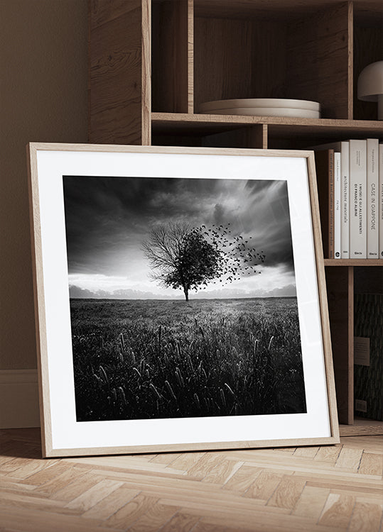 Sebastien DEL GROSSOs Illusion d'un printemps perdu ist eine eindrucksvolle monochrome Vision: Ein einsamer Baum erhebt sich in einer offenen Landschaft, während ein Vogelschwarm den blassen Himmel durchbricht. Ein poetischer, verträumter Moment zwischen Ruhe und Sehnsucht, in dem Zeit und Erinnerung zusammenfließen und zum Nachdenken einladen. In Schwarz/Weiß.