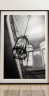 Ein zeitloses Schwarz-Weiß-Foto, das die Eleganz eines Pariser Interieurs einfängt, mit einem prächtigen Kronleuchter, der über einer geschwungenen Treppe hängt. Die aufwendigen schmiedeeisernen Elemente und architektonischen Details unterstreichen die französische Raffinesse und den künstlerischen Ausdruck – perfekt für Liebhaber klassischer europäischer Einrichtung.