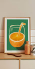 Lebendiges orangefarbenes, raffiniert illustriertes Poster
