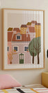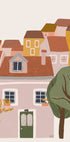Eine stimmungsvolle Straßenansicht aus Lissabon fängt die warme Farbpalette der Stadt ein: verputzte Fassaden in Senfgelb, Rosa und Terrakotta, getaucht in sanftes Licht. Enge Gassen, Balkone und klassische europäische Architektur schaffen eine unkonventionelle Atmosphäre, die Reisefreude, Nostalgie und Ruhe ausstrahlt. Perfekt als ruhiger, bodenständiger Blickfang für Zuhause und Büro.