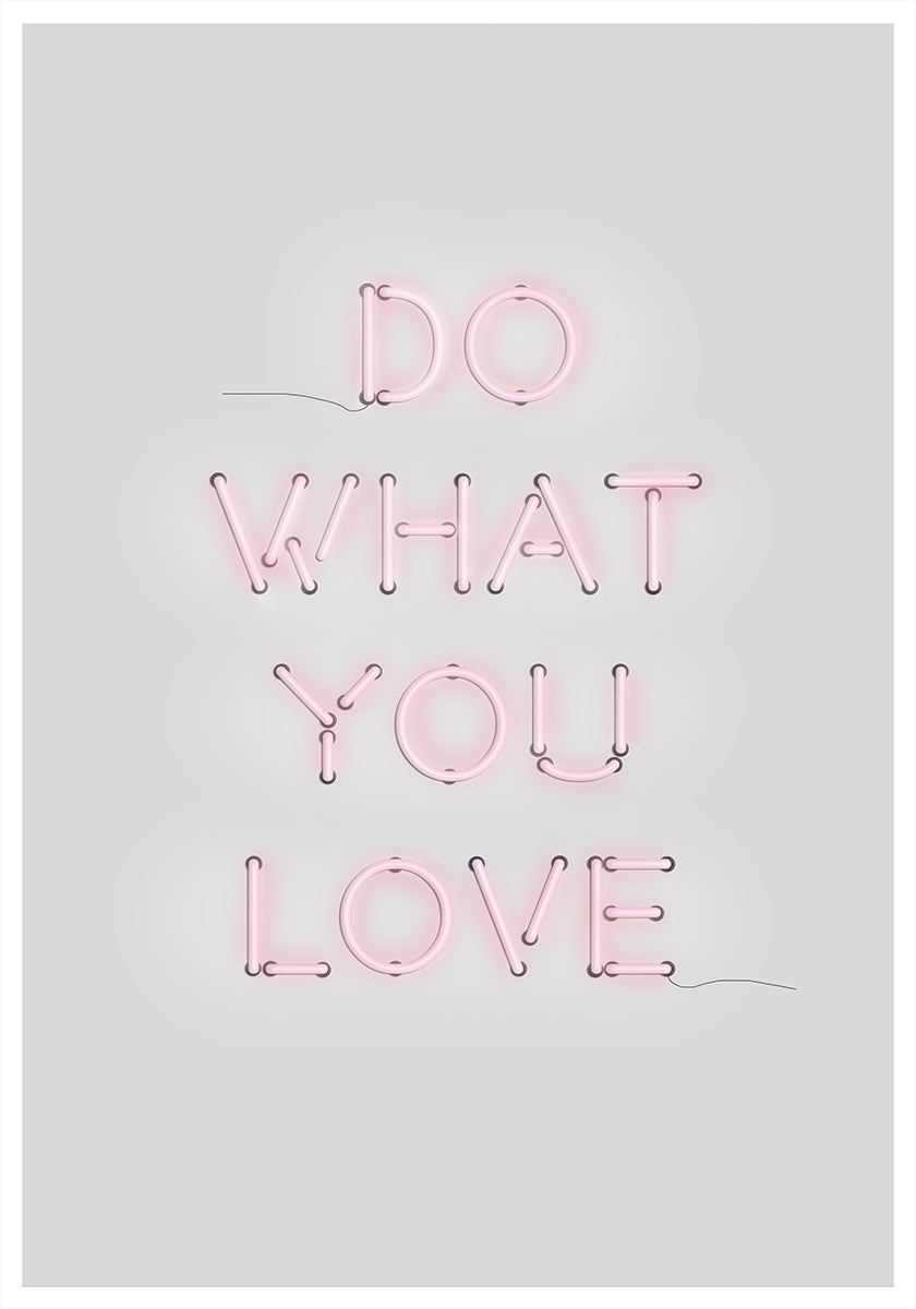 Neon Dreams fanger nattens puls: på en mørk grå baggrund lyser et blødt pink neon-citat som et skilt fra byen og tegner en varm aura af kærlighed og nærvær. Den minimalistiske typografi gløder med lette refleksioner og skaber en grafisk, romantisk stemning – perfekt som blikfang i stue, soveværelse eller kontor.