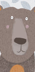Ein liebenswerter Braunbär steht inmitten eines weichen, nordischen Universums, umgeben von einem klaren Muster aus grauen Blättern und einem Hauch winterlicher Ruhe. Die klaren Formen und warmen Töne verleihen einen verspielten, selbstbewussten Ausdruck, perfekt für Kinderzimmer und gemütliche Ecken. Illustration der Künstlerin Carla Daly. Ein charmanter Hingucker mit sanftem Humor und skandinavischer Schlichtheit.
