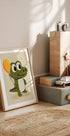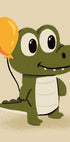 Eine fröhliche und verspielte Illustration eines süßen Krokodils, das einen orangefarbenen Ballon hält. Mit seinen großen, freundlichen Augen und weichen Texturen vermittelt dieses Kunstwerk ein Gefühl von Spaß und Leichtigkeit – perfekt für Kinderzimmer, Spielzimmer oder Räume, die Freude und Fantasie anregen sollen.