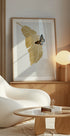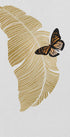 Ein raffiniertes, minimalistisches Kunstwerk mit einem goldenen Palmblatt und einem fein detaillierten Monarchfalter. Die klare Komposition kombiniert tropische Eleganz mit natürlicher Symbolik und macht es zu einem zeitlosen botanischen Motiv, das sich perfekt für moderne oder rustikale Innenräume eignet.