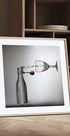 Gießen? von Wieteke de Kogel ist ein konzeptuelles Stillleben, in dem eine schräge Flasche in einer spielerischen optischen Täuschung Wasser in ein Weinglas zu gießen scheint. Die Komposition balanciert zwischen Ruhe und Spannung, mit klaren Linien, sanften Reflexionen und einer Alltagsszene, die in poetische Bewegung verwandelt wird. Perfekt für moderne Wände.