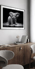 Ein dramatisches Schwarz-Weiß-Poster eines Elefanten, der durch das Wasser des Kafue-Flusses in Sambia bricht. Dezente Beleuchtung betont Falten, Muskeln und Wasserspritzer, während die majestätische Ruhe im Kontrast zur Kraft steht. Fotografiert von Gorazd Golob – ein starkes, zeitloses Motiv für moderne Räume. Perfekt als Blickfang im Wohnzimmer, Büro oder in der Galerie.