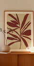 Red Leaf Silhouette af Treechild fanger naturens poesi i et minimalistisk udtryk: en dybrød bladform svæver på en cremet, tekstureret baggrund, hvor grafiske linjer og bløde kurver skaber ro. En varm, moderne accent der samler rummet og giver et elegant fokus i stue, soveværelse eller entré – enkel, botanisk skønhed.